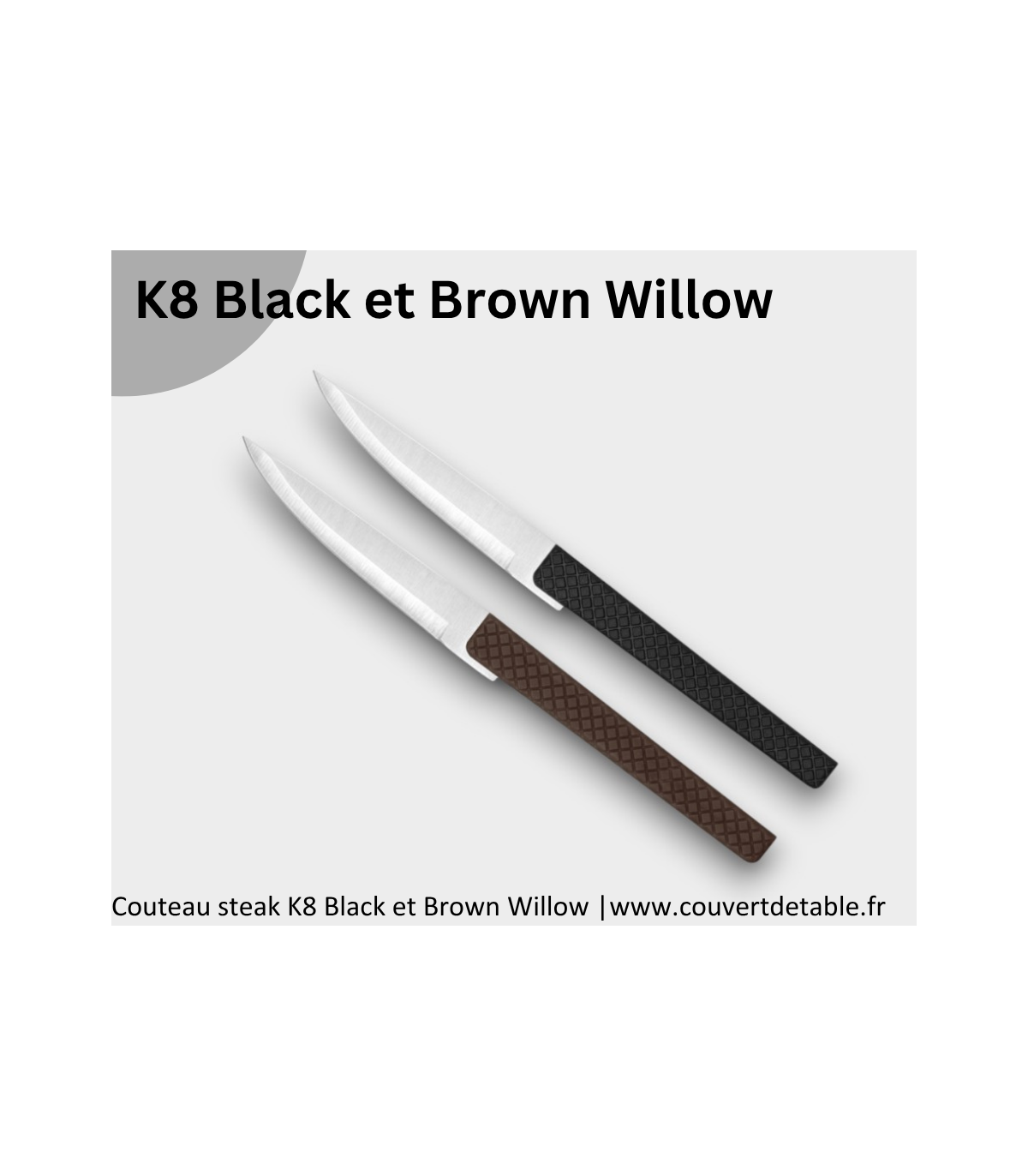 Le couteau à steak K8 existe avec le manche de couleur noir ou marron.